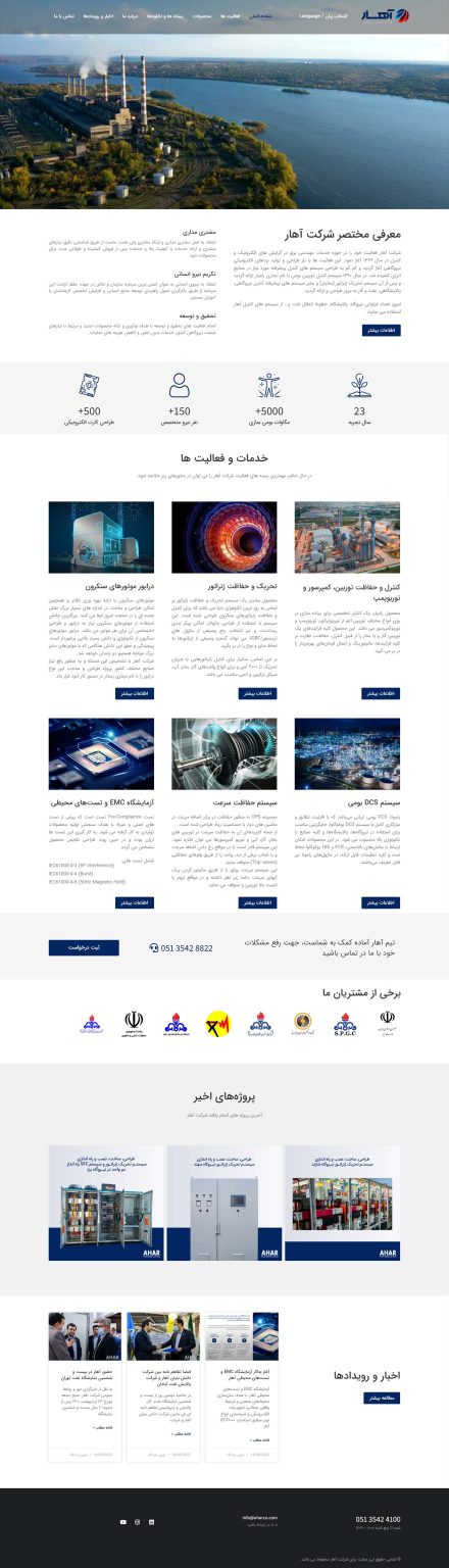 شرکت آهار از سال 1379 فعالیت خود را در زمینه خدمات مهندسی برق در الکترونیک و گرایش های کنترل آغاز کرد که این فعالیت ها با طراحی مجدد و تولید بردهای الکترونیک نیروگاه آغاز شد و به تدریج به طراحی سیستم های کنترلی پیشرفته مورد نیاز در صنایع انرژی كشید. در سال 1390 سیستم کنترل توربین به نام رامیار ارائه شد و پس از آن سیستم تحریک ژنراتور (سانیار) و سیستم های پیشرفته دیگر نیروگاه، پالایشگاه و کنترل نفت و گاز طراحی و ارائه شد.