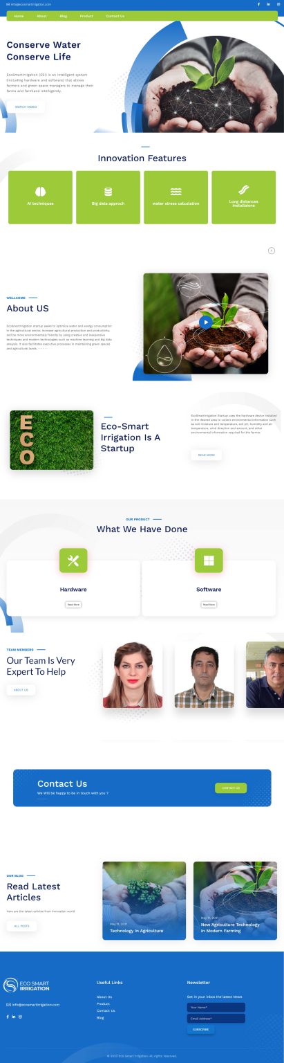 این شرکت فعال در بخش محیط زیست، از دستگاه سخت افزاری نصب شده در منطقه مورد نظر برای جمع آوری اطلاعات محیطی مانند رطوبت و دمای خاک، PH خاک، رطوبت و دمای هوا، جهت و مقدار باد و سایر اطلاعات محیطی مورد نیاز کشاورز استفاده می کند. سپس دادههای دریافتی از سختافزار و اطلاعاتی که کاربران در سیستم نرمافزاری ثبت و ذخیره کردهاند، توسط الگوریتمهای هوش مصنوعی و تکنیکهای تحلیل دادههای بزرگ مورد تجزیه و تحلیل و پردازش قرار میگیرند.